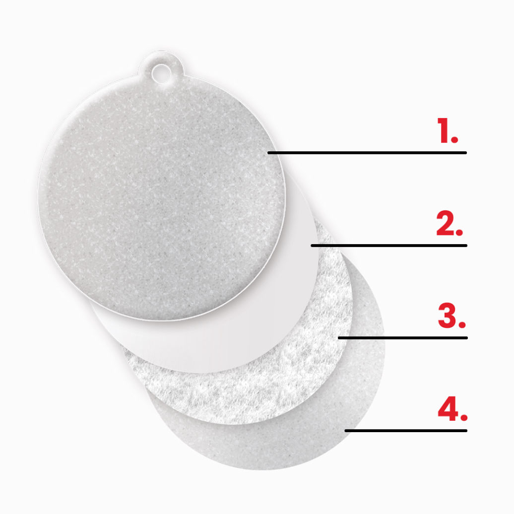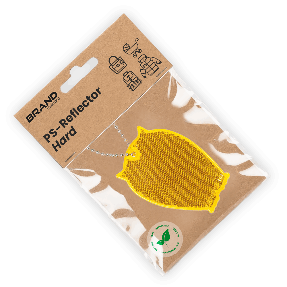 We recommend under printing or small print on the pendant. To meet the standards of the requirements of EU Regulation 2016/425, it is necessary to leave min. 30cm2 of unprinted reflective surface counting 2 sides of the pendant together. Printing under the reflective film does not cover the reflector. If the marking is on the reflective film, choose a correspondingly larger size of the pendant.